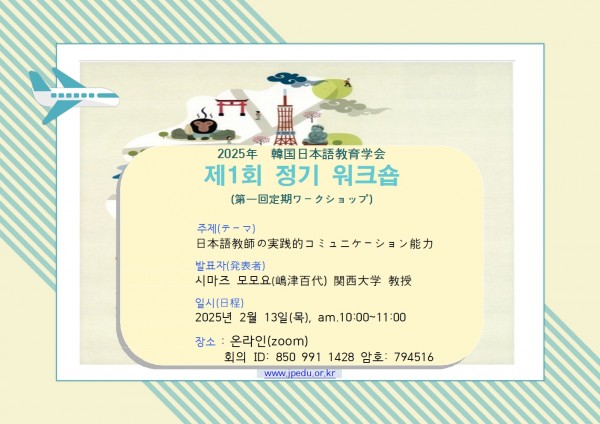 <2025년 한국일본어교육학회 제1회 정기워크숍>을 비대면(ZOOM)으로 개최할 예정입니다.