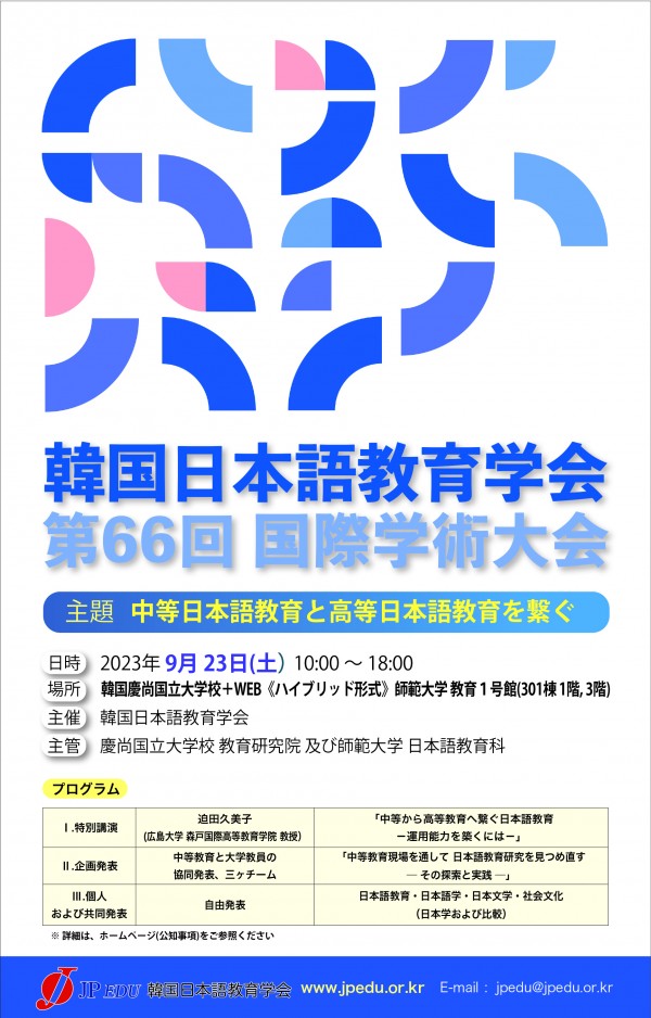 ➤ 大会名:第66回国際学術大会 「中等日本語教育と高等日本語教育を繋ぐ」