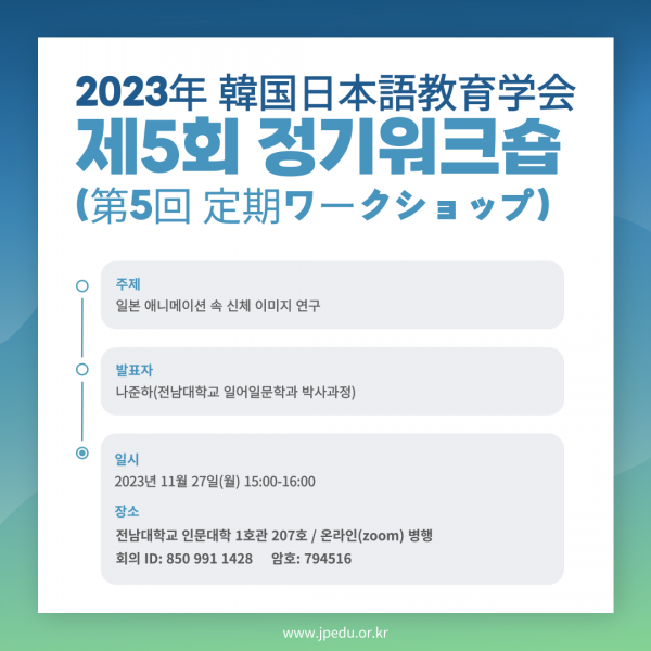 2023년 제5회 정기워크숍(11/27 월 오후 3-4시)